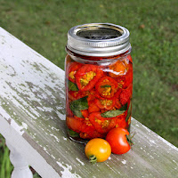 - Then add olive oil to cover the layers and continue to layer, till the jar is filled or the tomatoes have run out